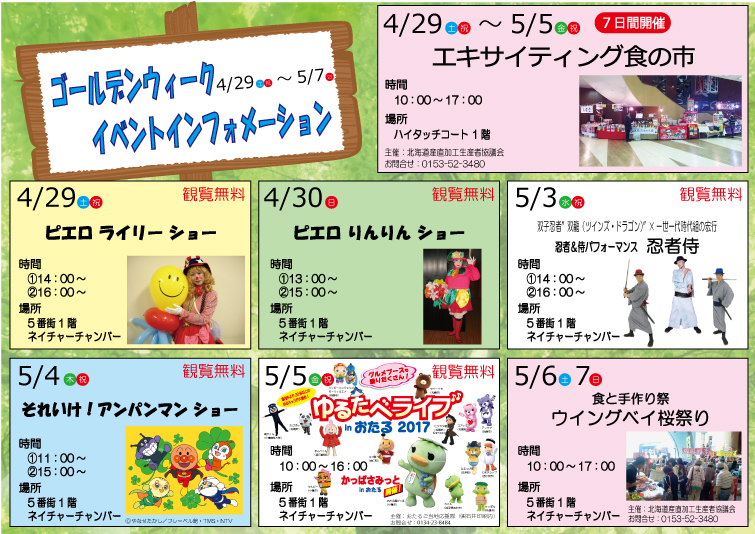 JR小樽築港駅直結の大型商業施設「ウイングベイ小樽」で 開催される「ゴールデンウィークイベント」をご紹介します。 あ (画像:ウイングベイ小樽HPより) ●4月29日(土・祝日)~5月5日(金・祝日) エキ […]