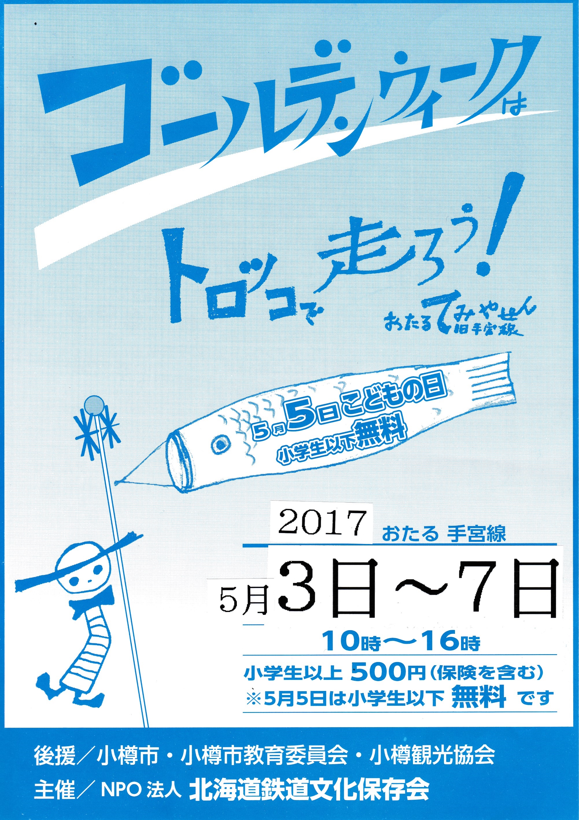 2017 年 5 月 イベント・おすすめ情報(1日~31日) 1 日 (月) 「天狗山ロープウエイ 夏期営業開始」(4/15~11/5)[天狗山ロープウエイ] 「おたる水族館」通常営業(3/18~11/26)[おたる水 […]