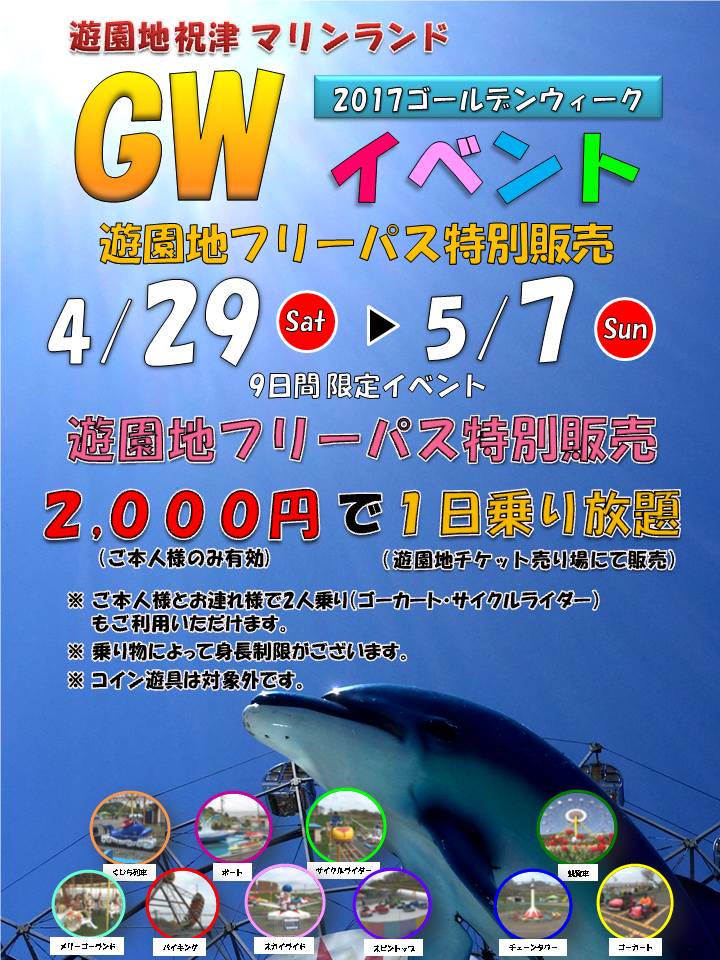 4月29日(土)~5月7日(日)限定で 遊園地「祝津マリンランド」のフリーパスを 特別販売いたします。 5月3日(水)~ 5月7日(日)は ゴールデンウィーク特別営業時間 遊園地は9:00~18:00で営業いたします。 […]