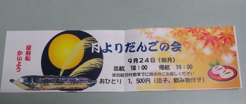 「屋形船でお月見(月よりだんごの会)」に参加しました。