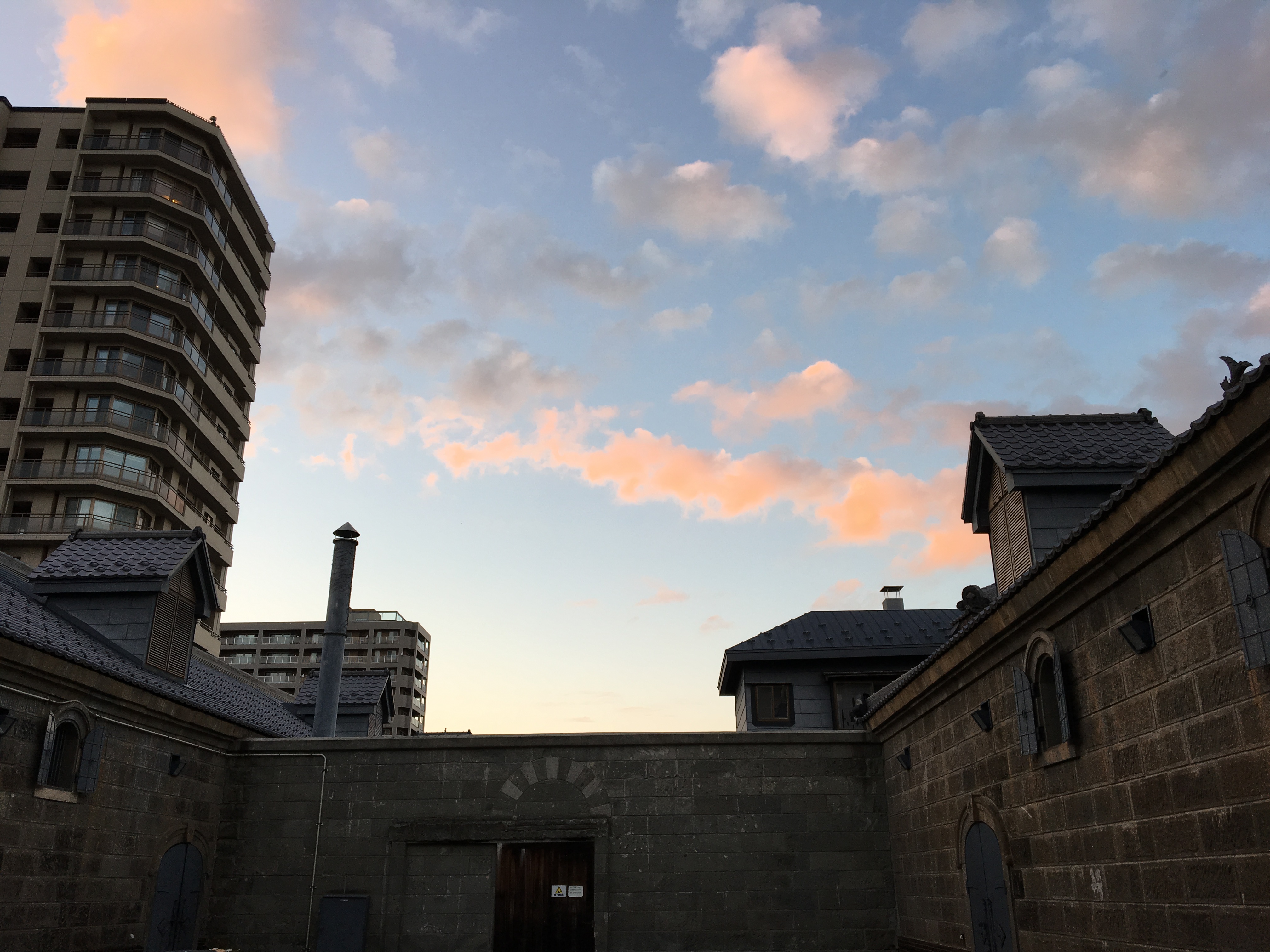 (↓9/29午後5時17分頃…運河プラザ中庭から夕陽が綺麗に見えました。)[ヨ]