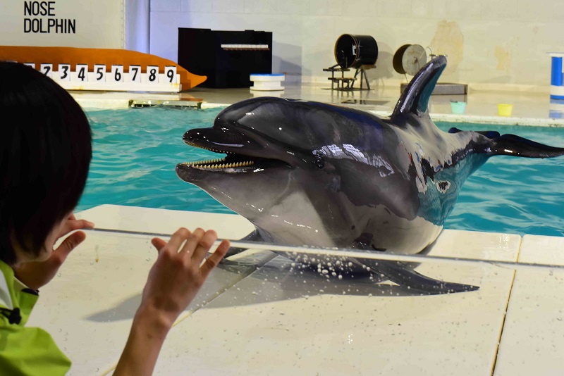 アクリルガラスの間近でイルカをご覧いただくことで、