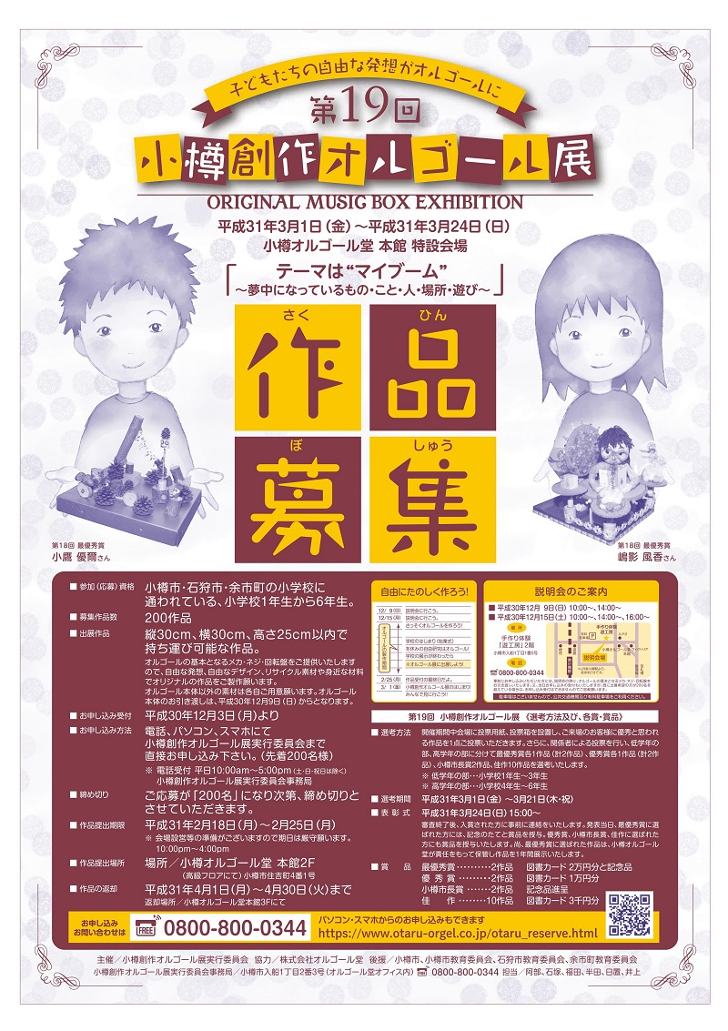 小樽オルゴール堂では毎年、 小樽市、石狩市、余市町に通われている小学校1年生から6年生を対象 にオルゴール作品を募集しています。 今回のテーマは『マイブーム』。 夢中になってるもの・こと・人・場所・遊びをテーマに作品を作 […]