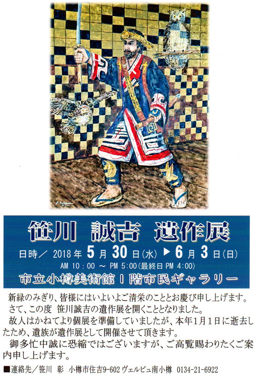 今年の1月1日に逝去されました、笹川誠吉氏の遺作展が開催されます。 どうぞ、この機会に故人を忍び作品をご覧下さい。 あ ◆◇◆ 第3回笹川誠吉水彩画展 ◆◇◆ あ 日時:5月30日(水)~6月3日(日) 場所:市立小 […]