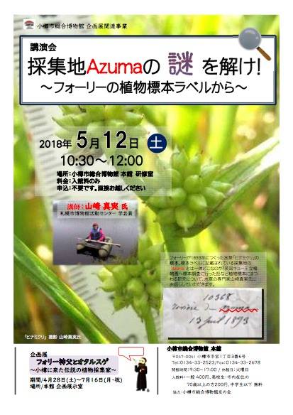 100年以上前にフォリー神父が作成した標本は、一体どこで採集した植物なのか? 講師には札幌市博物館活動センターの学芸員で、水草の専門家の山崎真実さんを お招きして、海外の標本庫へも調査に行った話などお話して頂きます。 a […]
