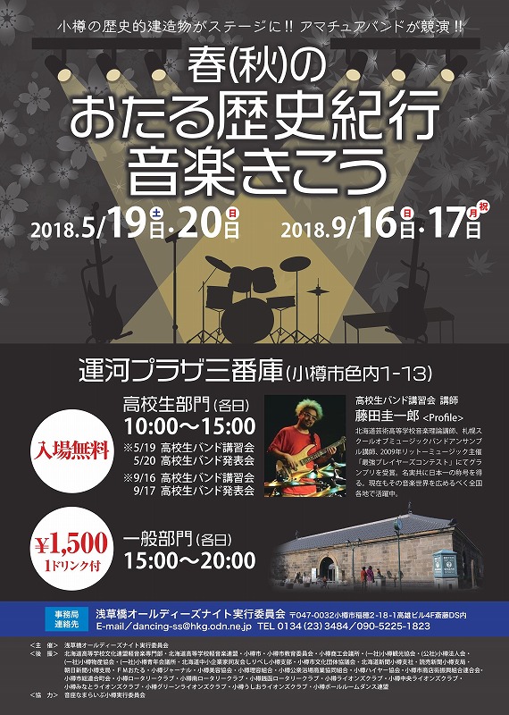 「2018 春のおたる歴史紀行音楽きこうVol.6」のお知らせです。 小樽歴史的建造物がステージに アマチュアバンドが競演します。 前半が高校生バンド講習会、発表会となります。 こちらは、入場無料となります。 後半が一般 […]