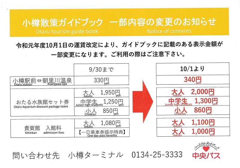「中央バス小樽散策ガイドブック」の内容が一部変更しますので