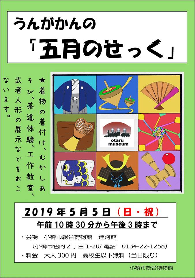 小樽市総合博物館・運河館では、「五月のせっく」が開催されます。 着物の着付け、昔の遊び、茶道体験、工作教室、武者人形の展示が行われます。 ・ ・ ● ● ● うんがかんの五月のせっく ● ● ● ・ ■ 日時:5月5日 […]