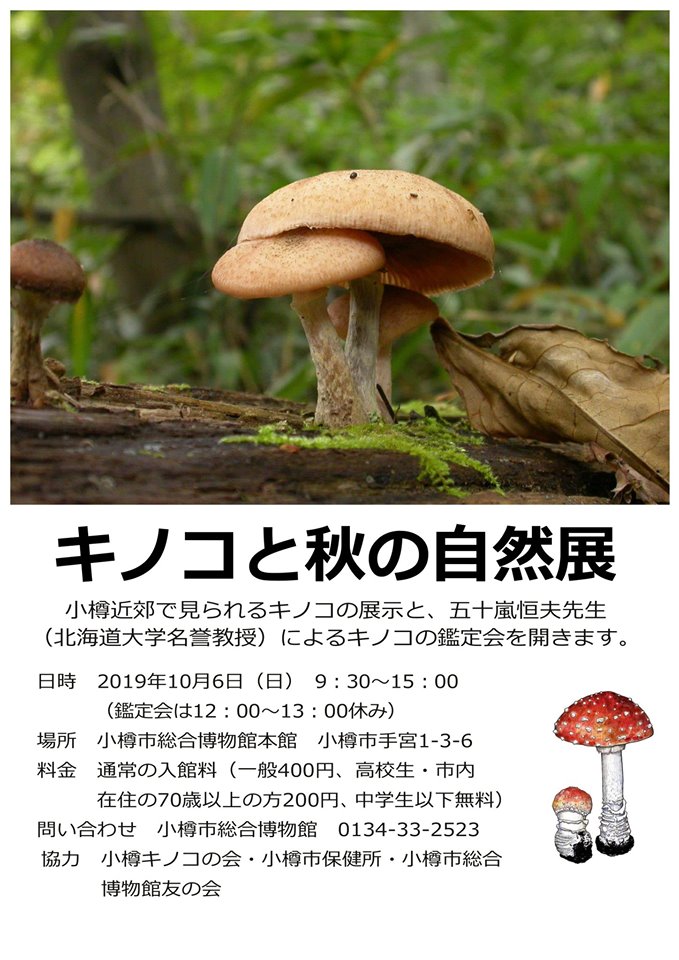 10月6日に毎年恒例の「キノコと秋の自然展」を開催されます。今年も小樽キノコの会のご協力いただき、小樽と近郊で採集された様々なキノコを展示します。キノコ博士の五十嵐恒夫先生(北大名誉教授)による鑑定コーナーもあります。是 […]