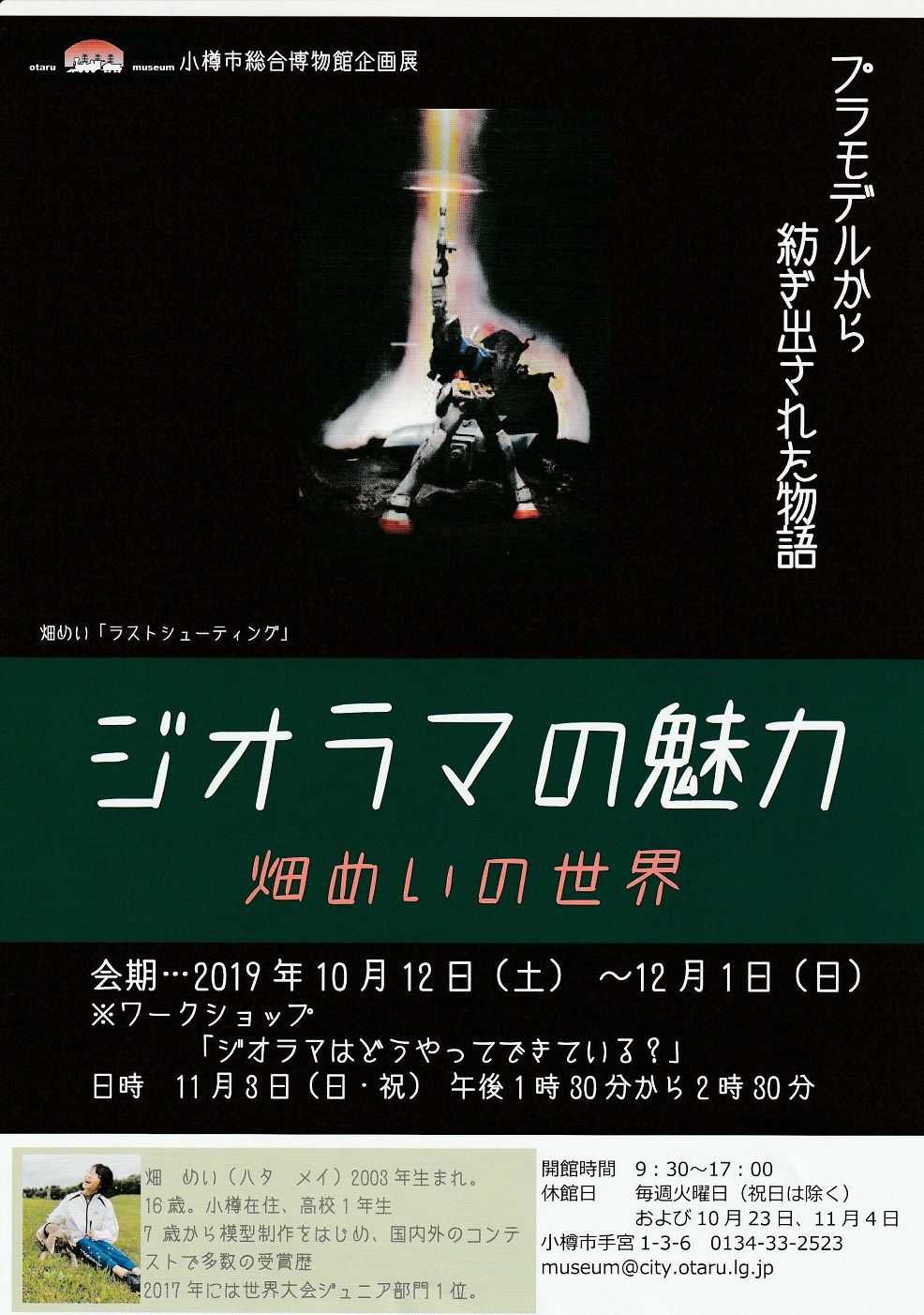 小樽市総合博物館では、10月12日~12月1日の期間 市内在住の世界大会で優勝経験を持つジオラマ作者 畑めい氏の作品をご紹介します。今回は昭和時代の北海道の鉄道をテーマにしたものをご紹介いたします。 小樽市総合博物館本館 […]