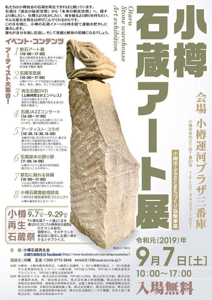 9月7日(土)運河プラザ三番庫ギャラリーにて 「小樽石蔵アート展」を開催します。 入場無料です。お気軽に参加してください。 石蔵の歴史や建築は2018年のシンポジウムで学びましたが、 本年2019年は「アート展」と題し、 […]