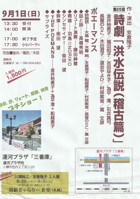 作・演出 支倉隆子さんの 詩劇「洪水伝説(稽古篇)」+ポエーマンスが開催されます。 本日、午後からの開演ですので、どうぞ足をお運びください。 ・ ・ ▼ ▼ ▼ 第25回詩劇「洪水伝説(稽古篇)」▼ ▼ ▼ ・ ■ 日時 […]