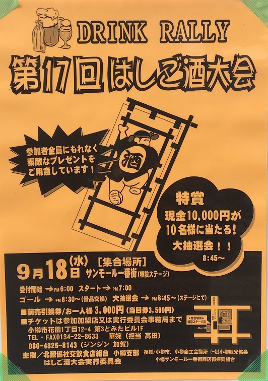 今年で17回目となります「はしご酒大会」が9月18日(水)に開催されます。花園飲食店街を飲み歩く夜のイベントで、35店舗の中から5店舗を7つのコースに分かれていて、90 分以内にはしごします。誰と一緒のグループになるのか […]