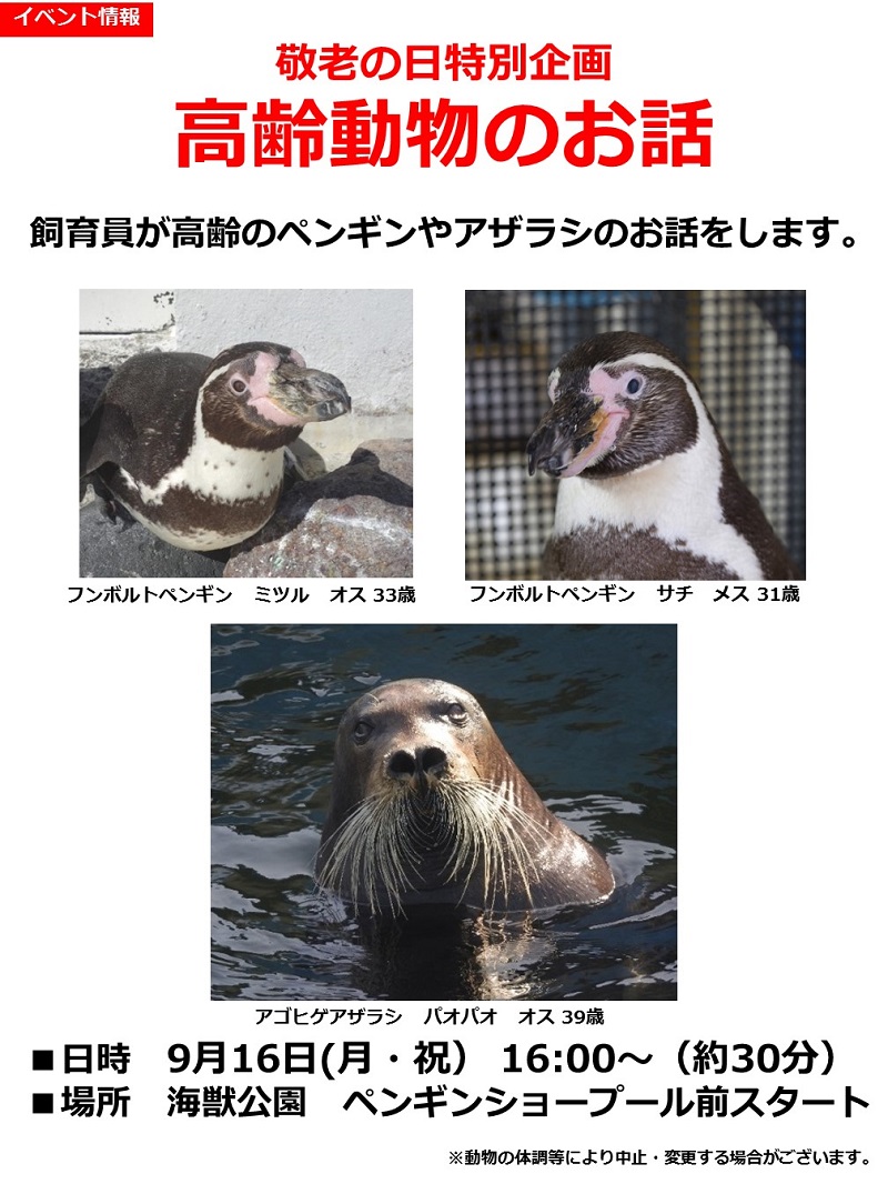 おたる水族館では9月16日(月・祝日)敬老の日にイベントを開催します。 9月16日(月・祝日)は夜の水族館(夜間営業)は行ってませんのでご注意下さい。 ・ ・ ●イルカどうでしょう ~イルカショー〇×クイズ編~ イルカシ […]
