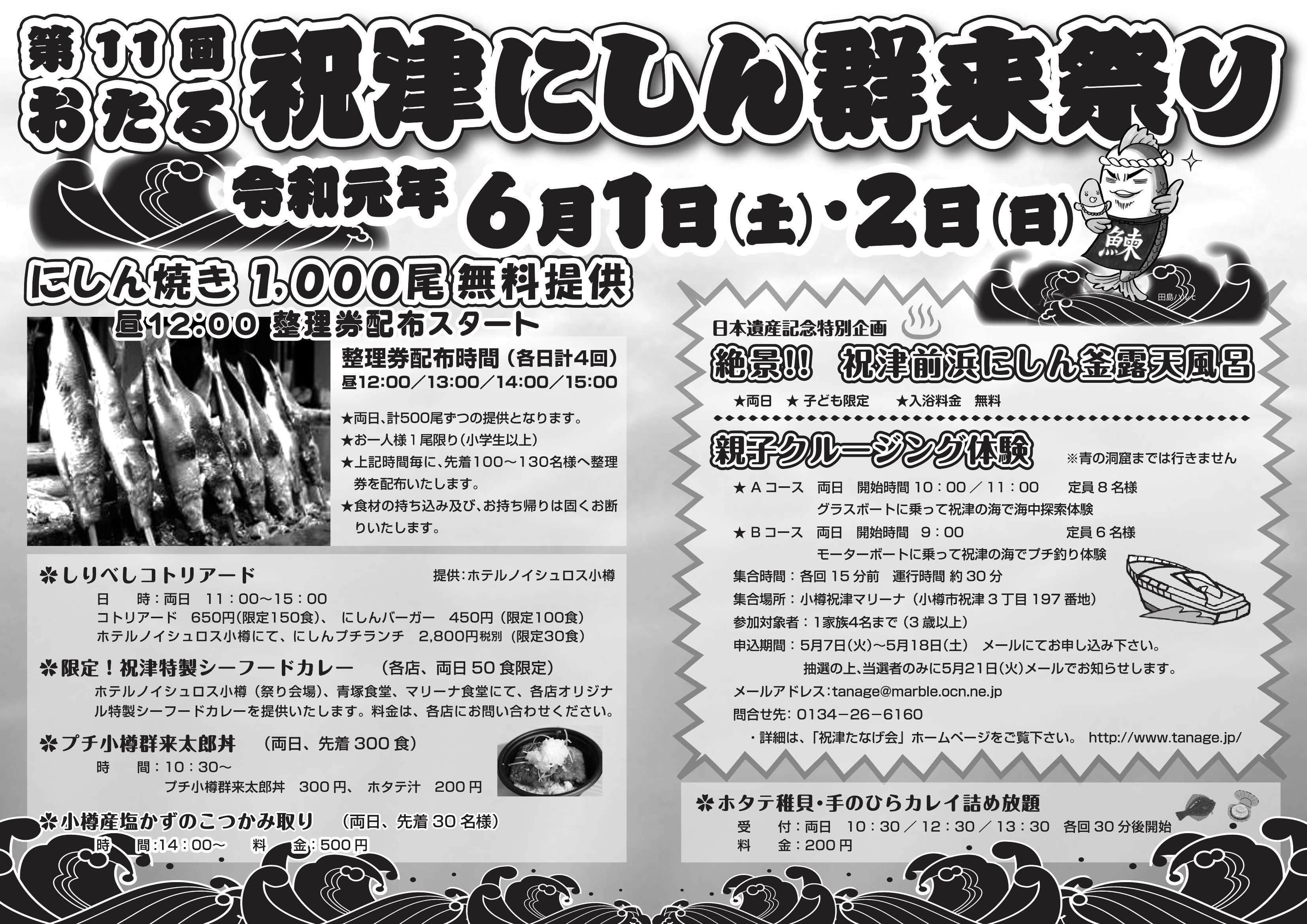 第11回目を迎えることになりました、「おたる祝津にしん群来祭り」が開催されます。 今年も「鰊1000尾焼 各日500尾を無料提供」など、今年も盛り沢山の内容になっています。 また、今年も鰊無料提供はチャリティーとして行い […]