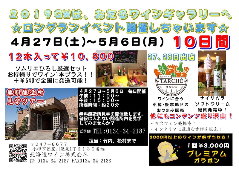 北海道ワインおたるワインギャラリーで ゴールデンウィークイベントを開催中です。 4月27日(土)~5月6日(月)10日間のロングランイベントです。 是非、小樽市街を一望する「おたるワインギャラリー」へ お出かけになりませ […]