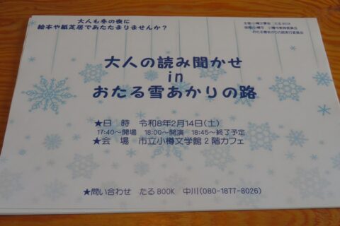 小樽雪あかりの路28…大人の読み聞かせ in おたる雪あかりの路~たるBOOK(市立小樽文学館 2/14 18:00~)