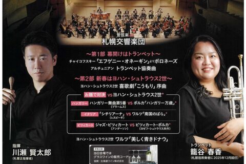 毎年恒例の「札響ニューイヤーコンサート in 小樽」をご紹介します。 2026年は指揮者川瀬賢太郎氏(札響正指揮者)、 トランペット籠谷春香氏(札響首席奏者)で…2025年12月14日 -