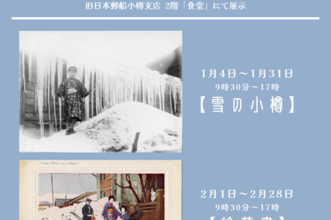 旧日本郵船株式会社小樽支店で、明治・大正・昭和と港町を季節との時代の記憶を2階「食堂」で記憶の中の小樽写真展をします。 1月テーマ「雪の小樽」・2月テーマは「絵…2025年12月24日 -