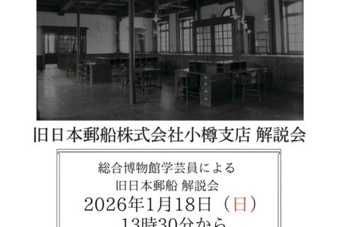 総合博物館学芸員による旧日本郵船株式小樽支店で説明会が開催されます。 開催日時 2026年 1月18日(日) 13:30~14:10 場 所 旧日本…2025年12月15日 -