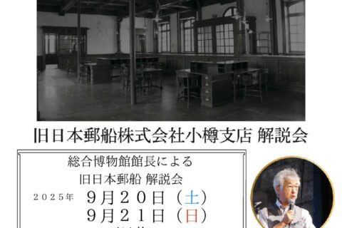 旧日本郵船株式会社小樽支店解説会総合博物館館長による「小樽港の中の郵船」が開催されます。 開催日時 2025年 8月31日(日) 13:30~14:15 場 …2025年08月25日 -