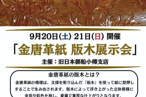 旧日本郵船小樽支店・金唐革紙 版木展示会(9/20・21)