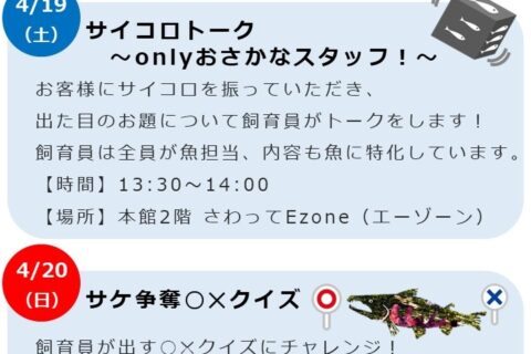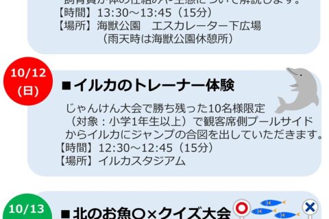 おたる水族館…10月の3連休イベント(10/11.12.13)