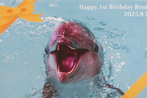 2025年8月18日(月) イルカスタジアムにて 昨年生まれたバンドウイルカ「レンカ」のお誕生日会が開催されました。 「レンカちゃん1歳のお誕生日おめでとうござ…2025年08月21日