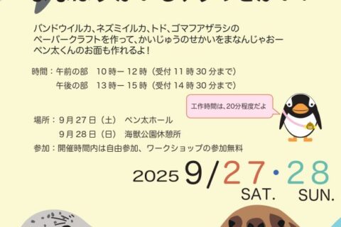 おたる水族館では2025年9月27日(土)、28日(日)に 「わくわクラフト!まなぼう かいじゅうのせかい!」を開催いたします。 おたる水族館の生きもののペーパ…2025年09月12日 -
