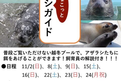おたる水族館では2025年11月2日(日)から土日祝限定で 秋のイベント「海獣公園アザラシちょこっとガイド」 をおこないます。 越冬プールで飼育しているアザラシ…2025年10月29日 -