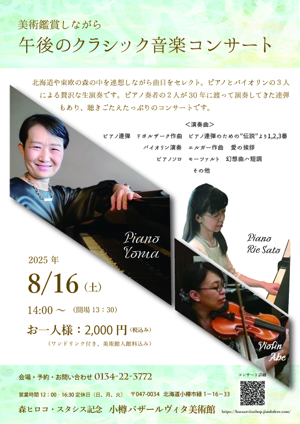ピアノとバイオリンの3人による贅沢な生演奏です。