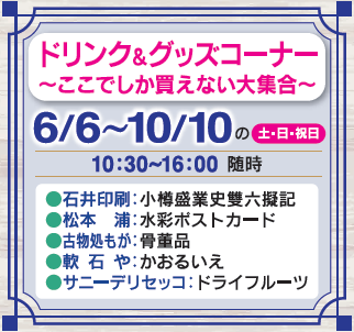 日時:2020年6月6日(土)~10月10日(土)の土曜日、日曜日、祝日