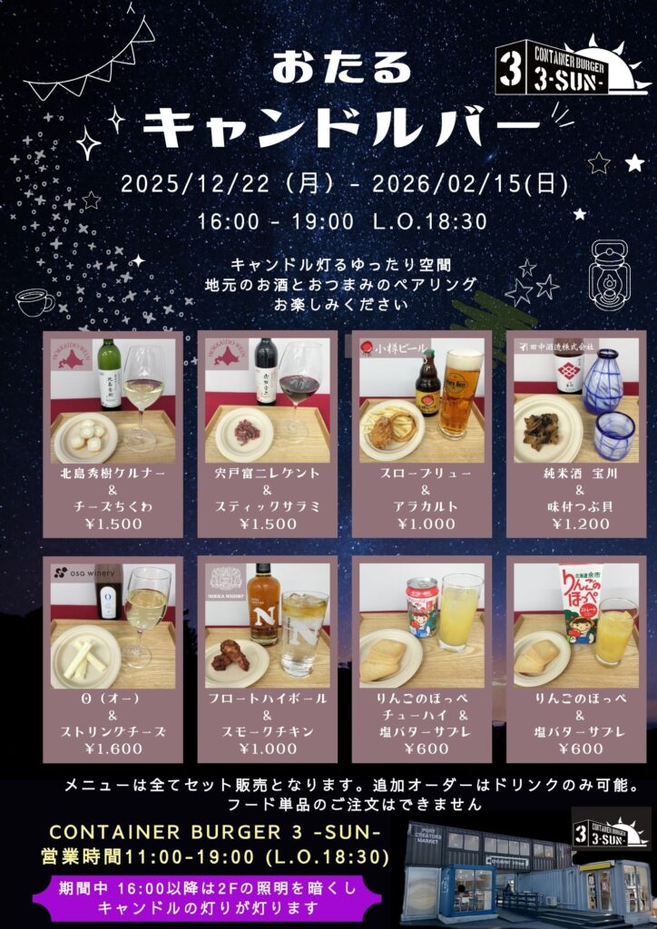 期間中 16:00以降は2Fの照明を暗くし、キャンドルの灯りが灯ります。