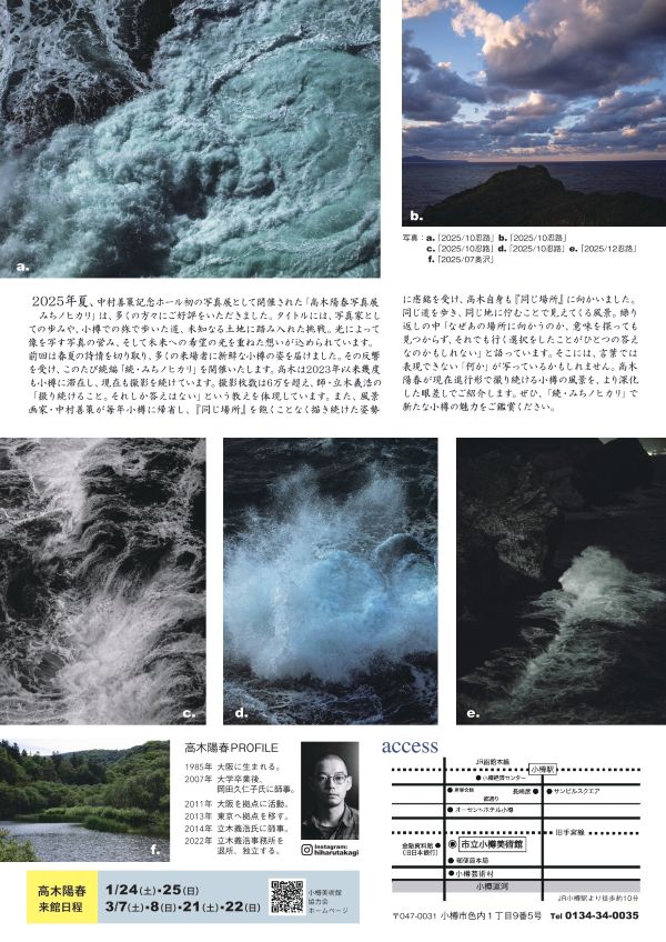 - 01月24日(土) ~ 03月22日 高木陽春写真展「続・みちノヒカリ」小樽に導かれたその先に