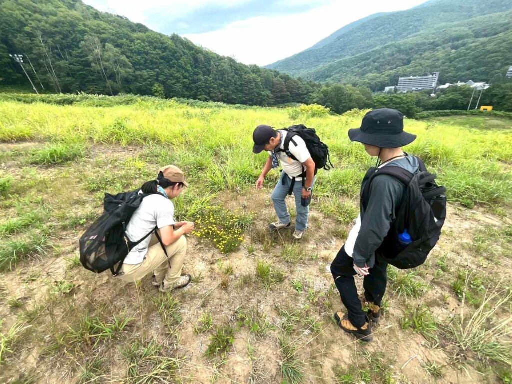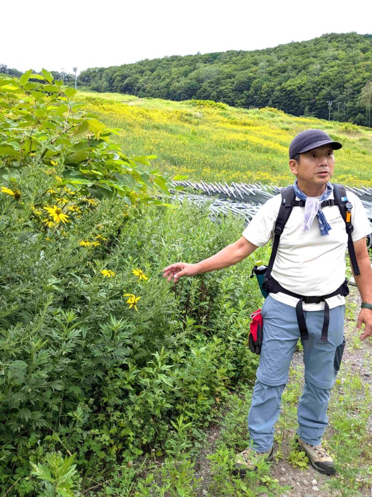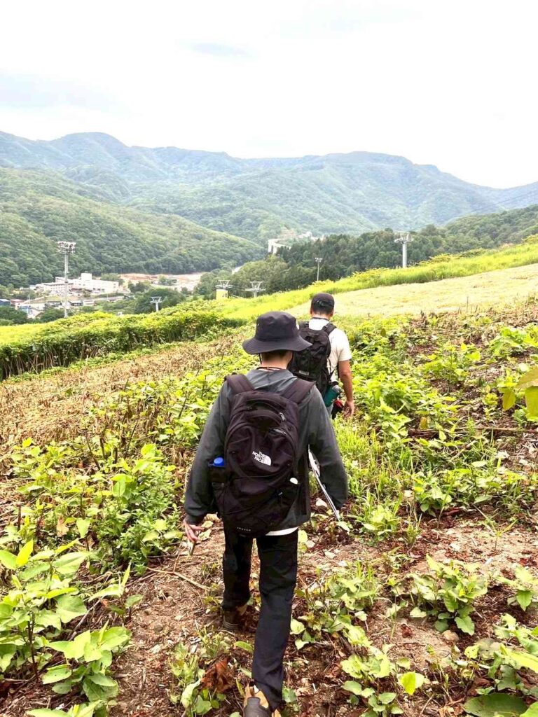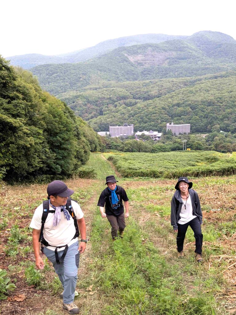 ハイキングのルートは、なんと冬にはスキー場として使われる斜面を今日はゆっくりと、自分の足で登っていきます。ちょっと不思議な感覚です。