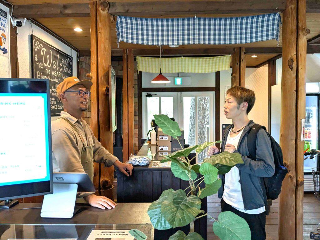 小樽の大自然を感じるアサリラウンジには、スタッフの藤井さんとじゅんぺいさんが笑顔で迎えてくれました。
