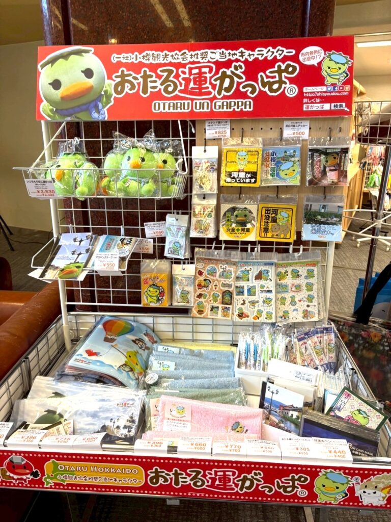 売店には、小樽のゆるキャラ「おたる運がっぱ」のグッズが嬉しい。小樽の甘味処といえばあまとうさん、子供の頃から大好きなアイスもあり!私のイチオシアイスは、クリームぜんざい。