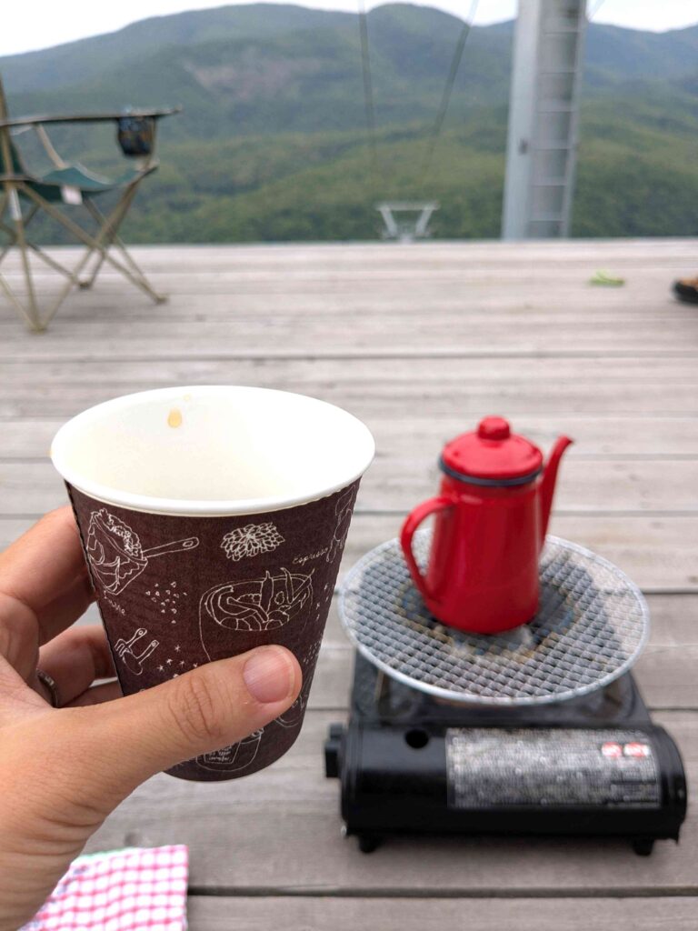 そして、登り切った場所リフトの降り口で藤井さんが、淹れてくれた一杯のコーヒー。
