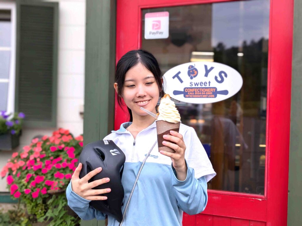店内にはケーキや焼き菓子が並びますが、運動の後に食べたくなるのはやっぱりアイスクリーム。クロワッサンが添えられたソフトクリームは食べ応えがあります!