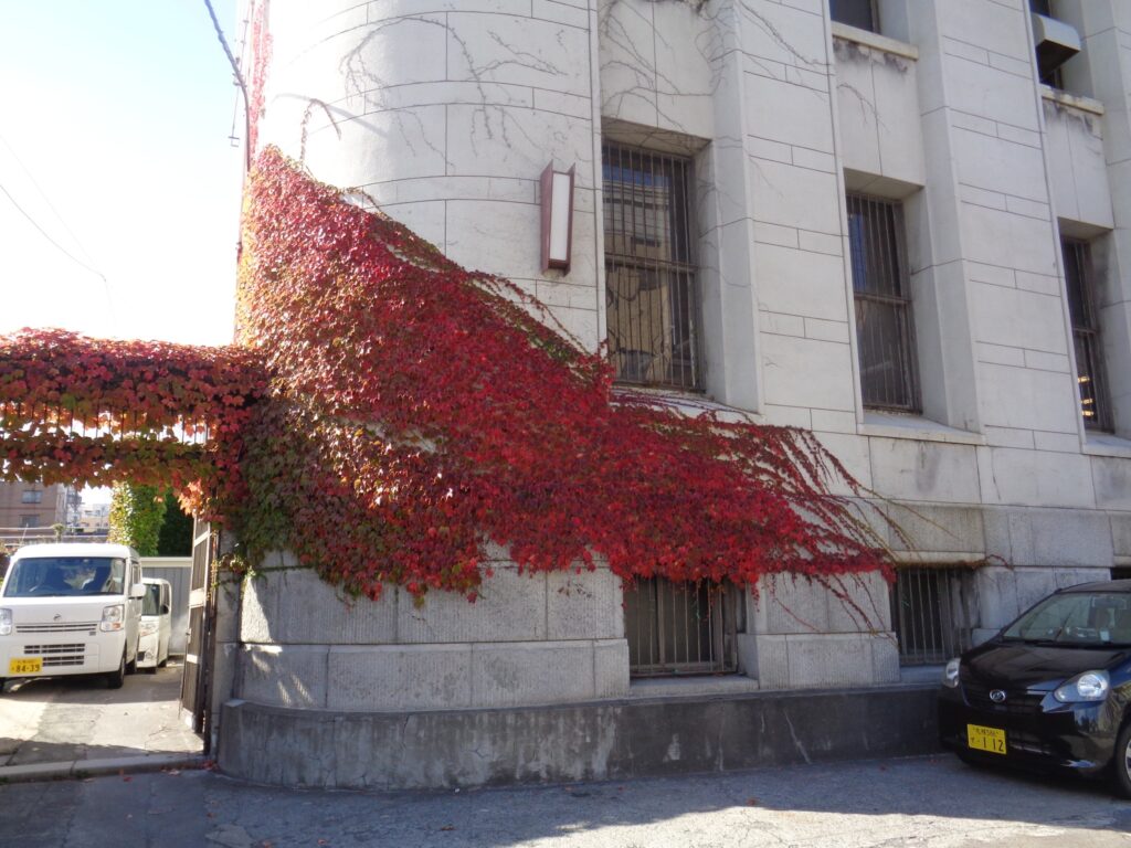 この石倉だけでなく、小樽は運河周辺の建物や山の手のあちこちの家でも、ある時期ツタの芸術展が、始まりを告げずに幕を開ける。