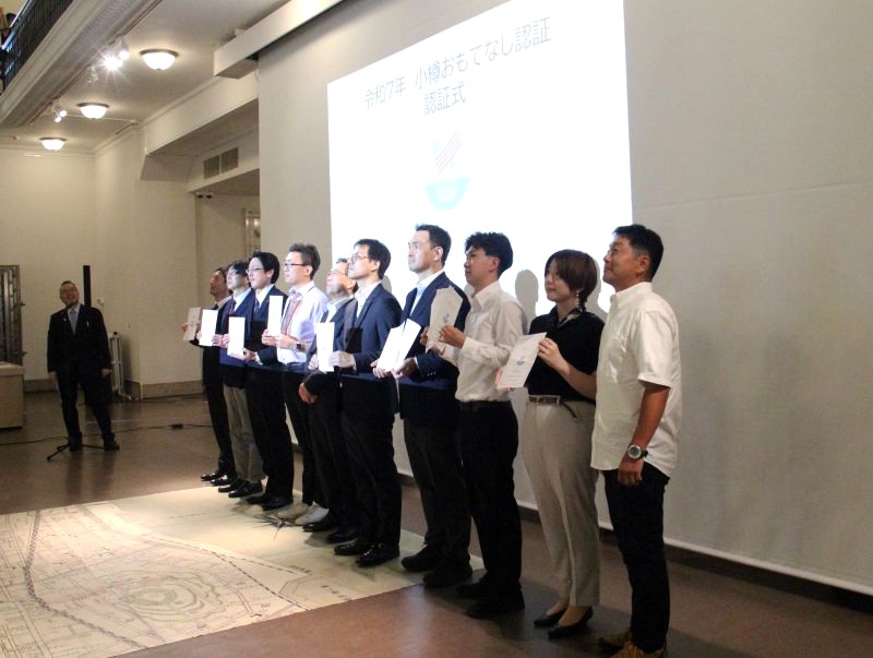 2024年春から始動した地域独自の仕組み、「小樽おもてなし認証」は2年目を迎え、新たに8社11施設が認証を取得、7月に認証式が開催されました。