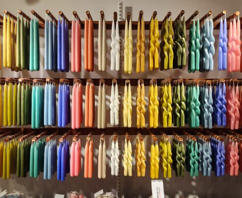 工房で作られる伝統製法のディッピングキャンドルをはじめ