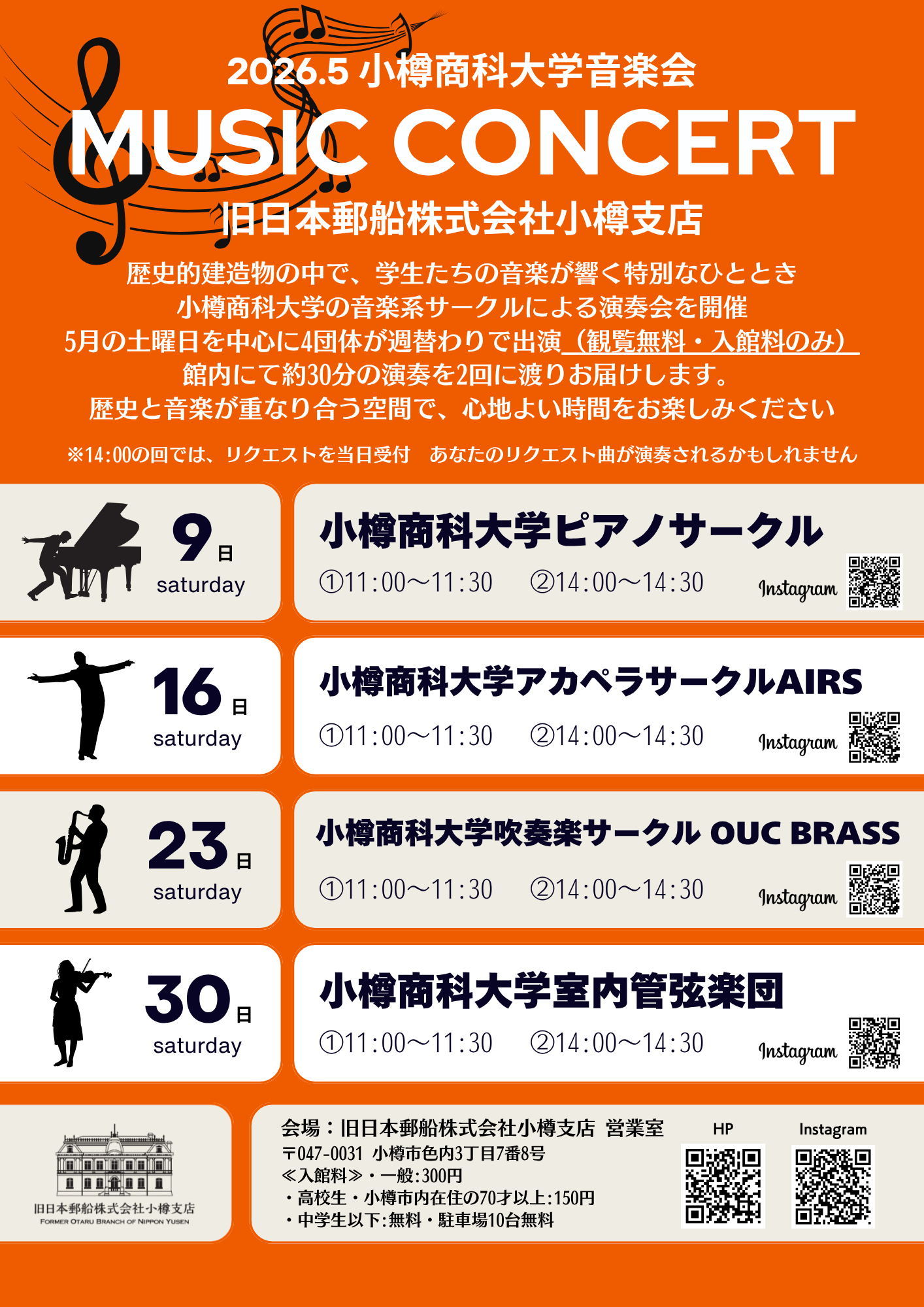 小樽商科大学の音楽系サークルによる演奏会を開催いたします。