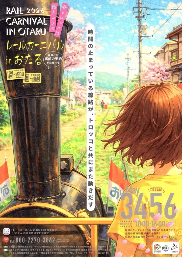 開催時期2026年 5月3日(日)終了時期2026年 5月6日(水)場所小樽市色内2丁目旧国鉄手宮線跡お問い合わせzeromile-hozonkai@tempo.ocn.ne.jp主催:NPO法人北海道鉄道文化保存会