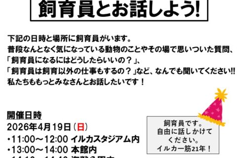 おたる水族館…飼育の日限定イベント「飼育員とお話しよう!」(4/19)