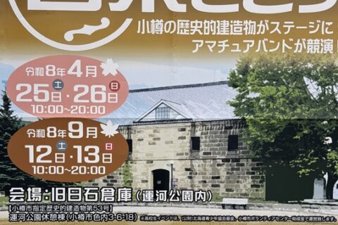 年に2回の浅草橋オ―ルディーズナイト『おたる歴史紀行音楽きこう』が、旧日石倉庫(運河公園休憩棟)の会場で開催されます。 恒例となった高校生バンド講習会が実施され…2026年04月13日 -