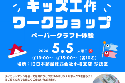 旧日本郵船株式会社小樽支店 たのしいキッズ工作ワークショップ 開催いたします。 ダイカットマシンを使って世界にひとつだけのオリジナルボックスを作ろう! 初めての…2026年04月11日 -