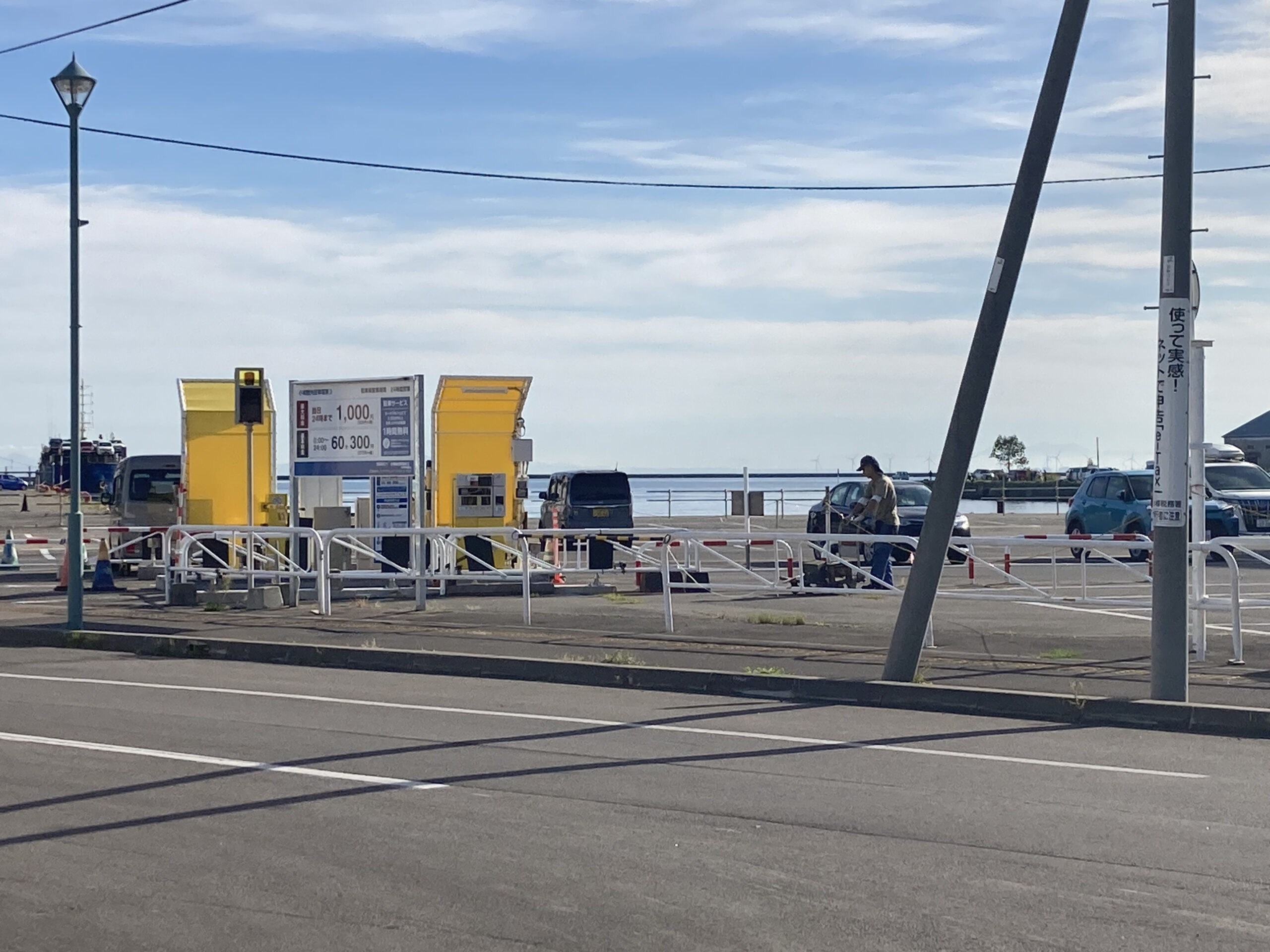 利用方法:まず駐車スペースに駐車してください。精算機で料金(12時間分か24時間分)を支払い、駐車券の印刷面を上にしてダッシュボードに置いてください。