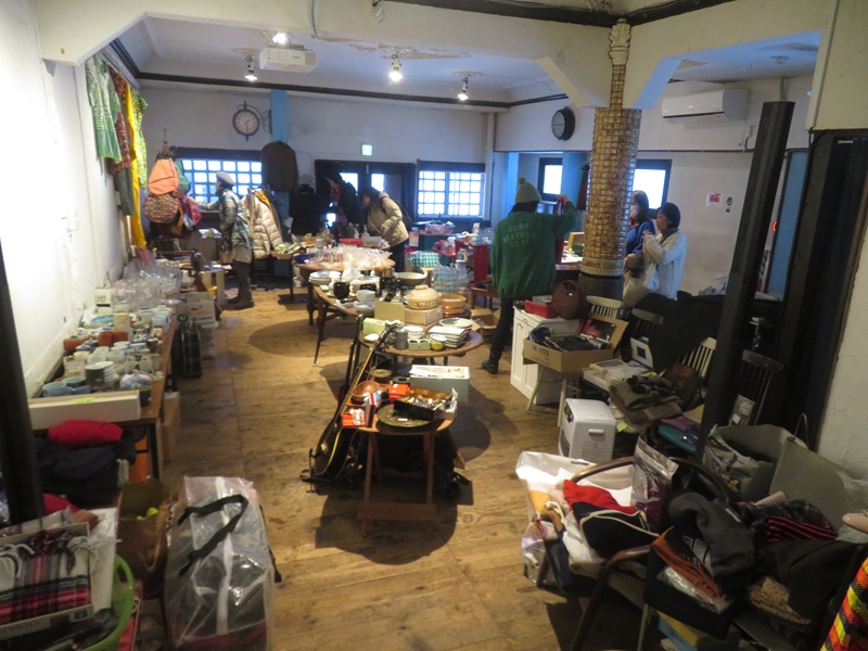 会場いっぱいに山積みな雑貨、食器、お洋服、楽器などなど。