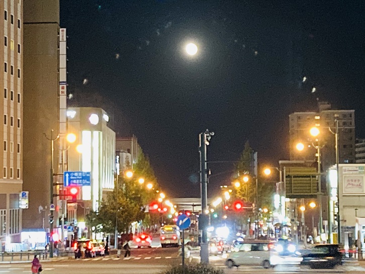 (↓10/30 18:00過ぎ…小樽駅・船見坂からお月様が綺麗に見えました。)[ヨ]